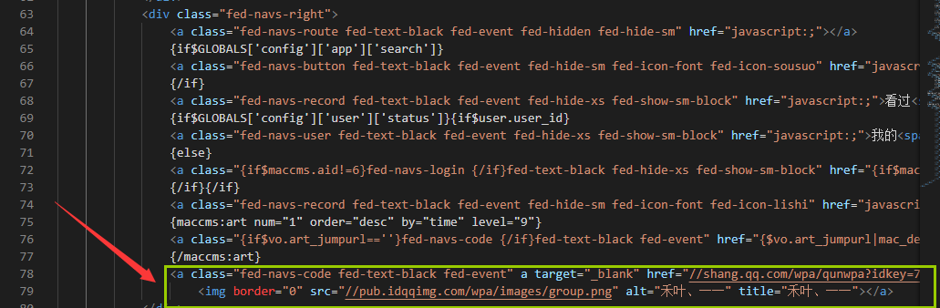 这里也可以选择二维码加群,修改地址还是:template/vfed/html/basics/navbar.html,只不过在右导航栏添加QQ群网页代码。